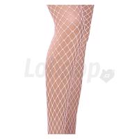 Bílé síťované punčochy s malými oky a podvazkovým pásem S013