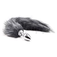 Malý kovový anální kolík s dlouhým liščím ocáskem šedý